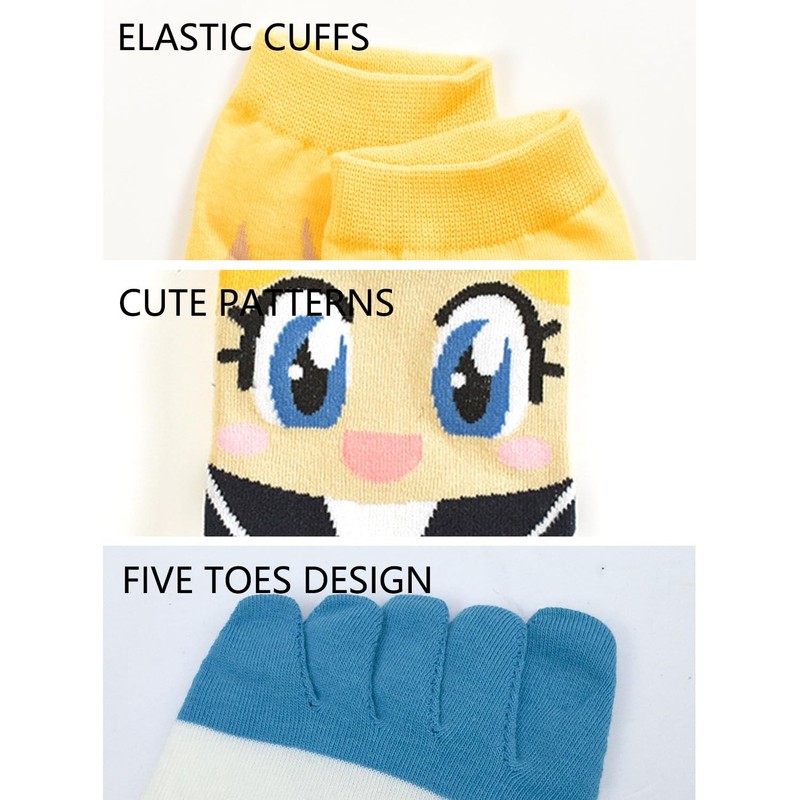Womens Funny Toe Socks Five Finger Low Cut Socks Cartoon Toe Seperated Cotton Running Ankle Socks