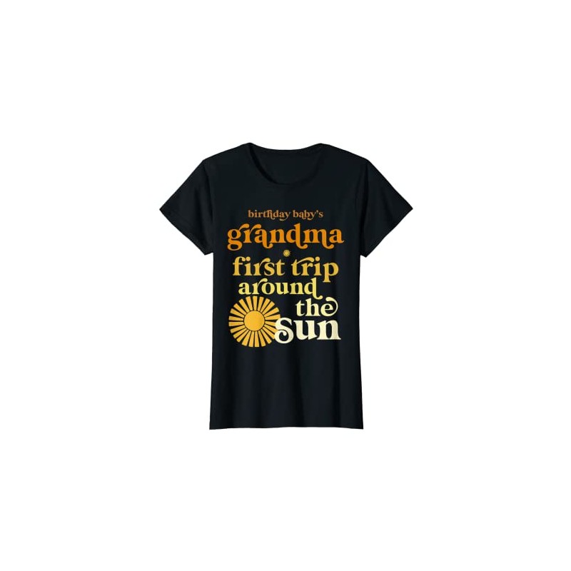 Womens Grandma First Trip Around The Sun Birthday Boho Retro Groovy T-Shirt