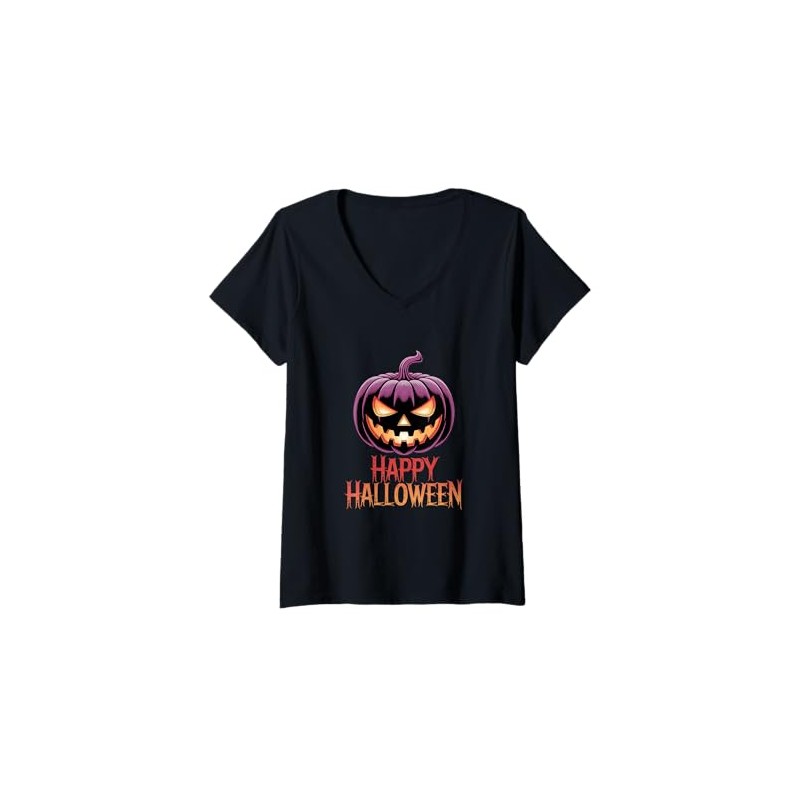 Womens Happy Creepy Spooky Design Lantern Jack Kürbis Ideal For V-Neck T-Shirt