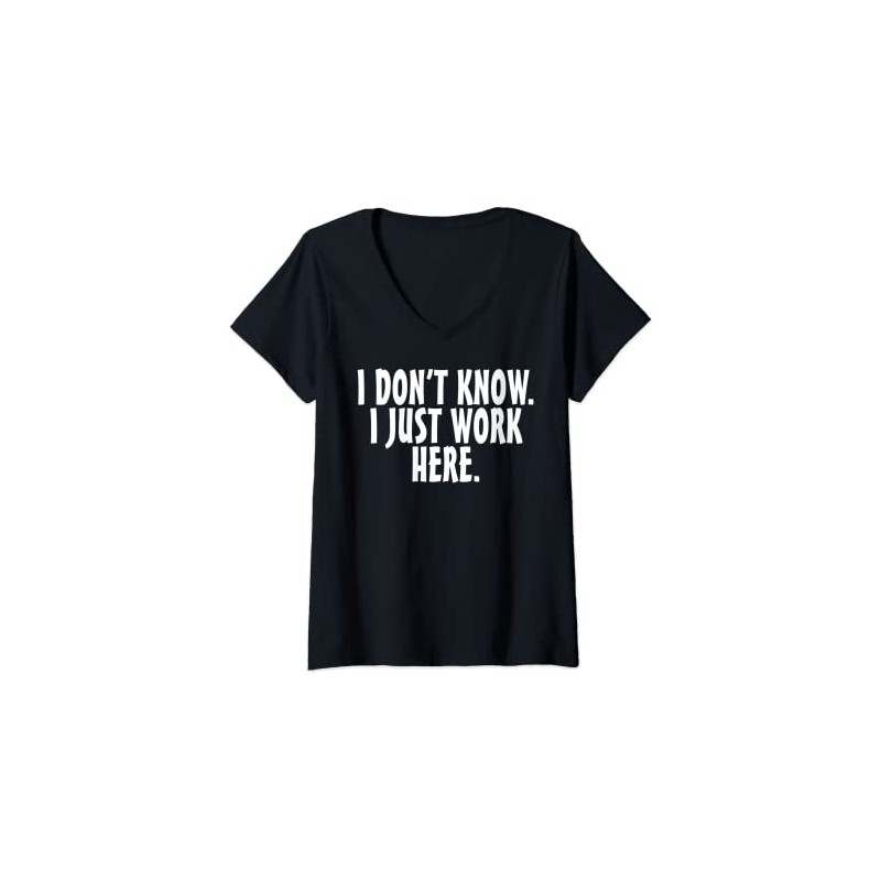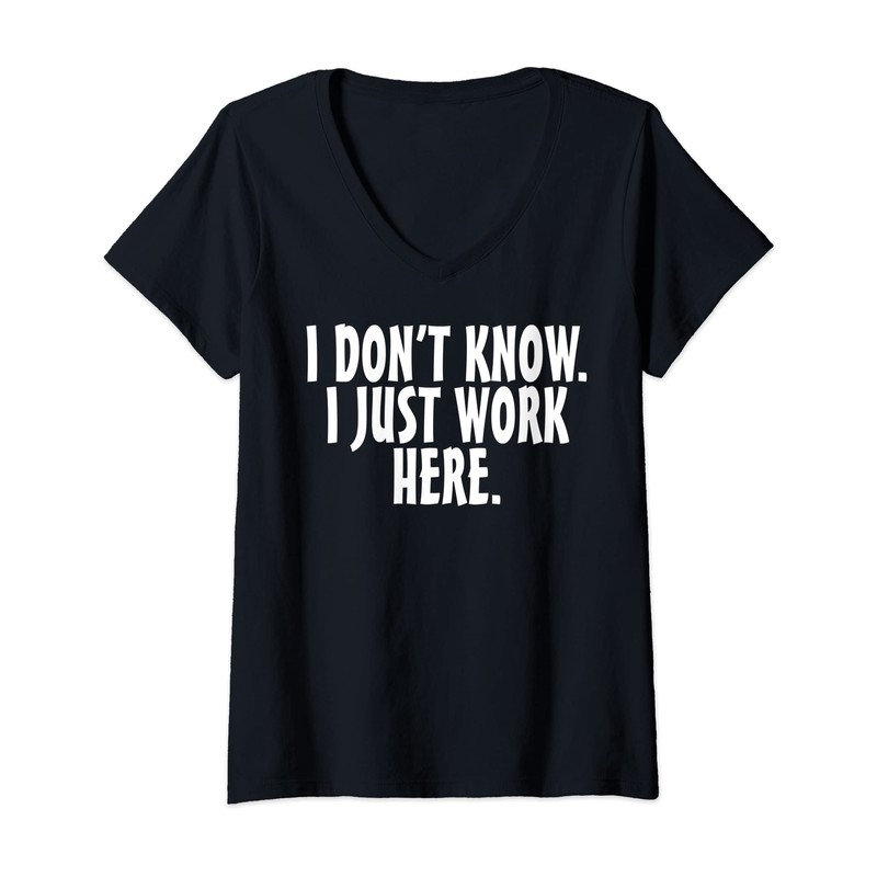 Womens I don't know I just work here; funny Quote V-Neck T-Shirt