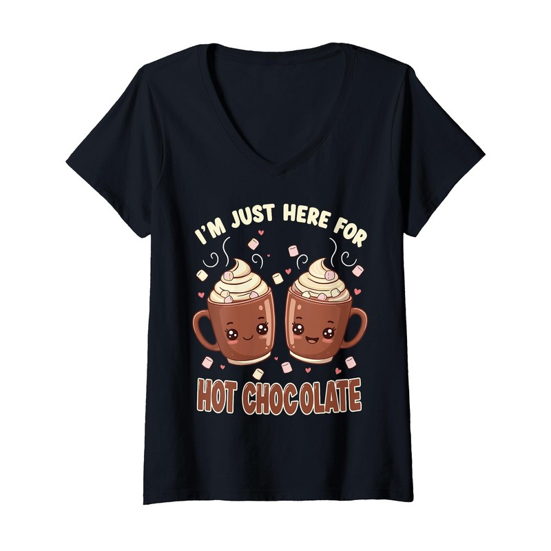 Womens I'm Just Here For Hot Chocolate Marshmallow Cocoa Humor V-Neck T-Shirt