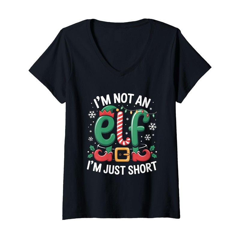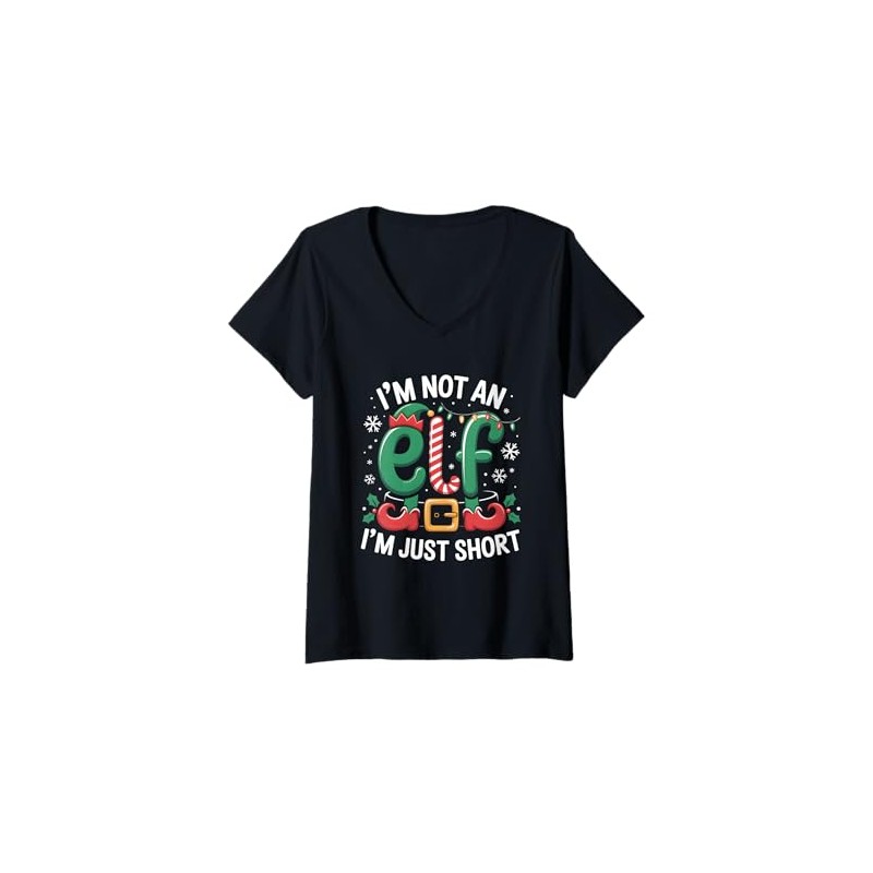 Womens Im Not an Elf Im Just Short Candy Can Belt Christmas Funny V-Neck T-Shirt