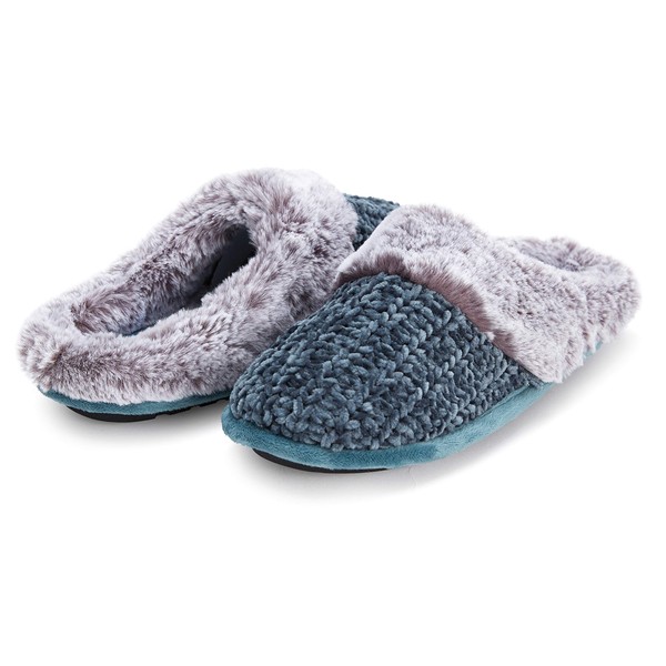 - A WARM EMBRACE FOR YOUR FEET: The Floopi indoor/outdoor slippers for women melt your worries away the moment you slip into them. With a Velour Lined Clog, Grey Two Tone Faux Fur Collar, a stylish Soft Chenille Knit, and memory foam insoles, winter and fall get cozier and comfier with every step.