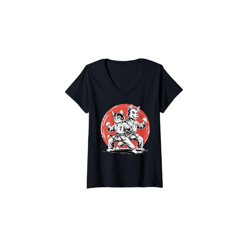 Womens Karate Cat Dog Karate Gi Karate Japanese Stuff Karate V-Neck T-Shirt