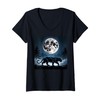 Womens Kids Black Panther Full Moon Trees Sasquatch Black Panther V-Neck T-Shirt