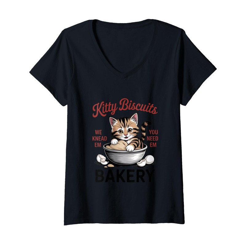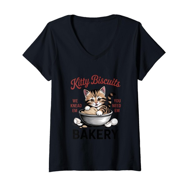 Womens Kitty Biscuits Bakery Freshly Pawed Cuteness Design V-Neck T-Shirt