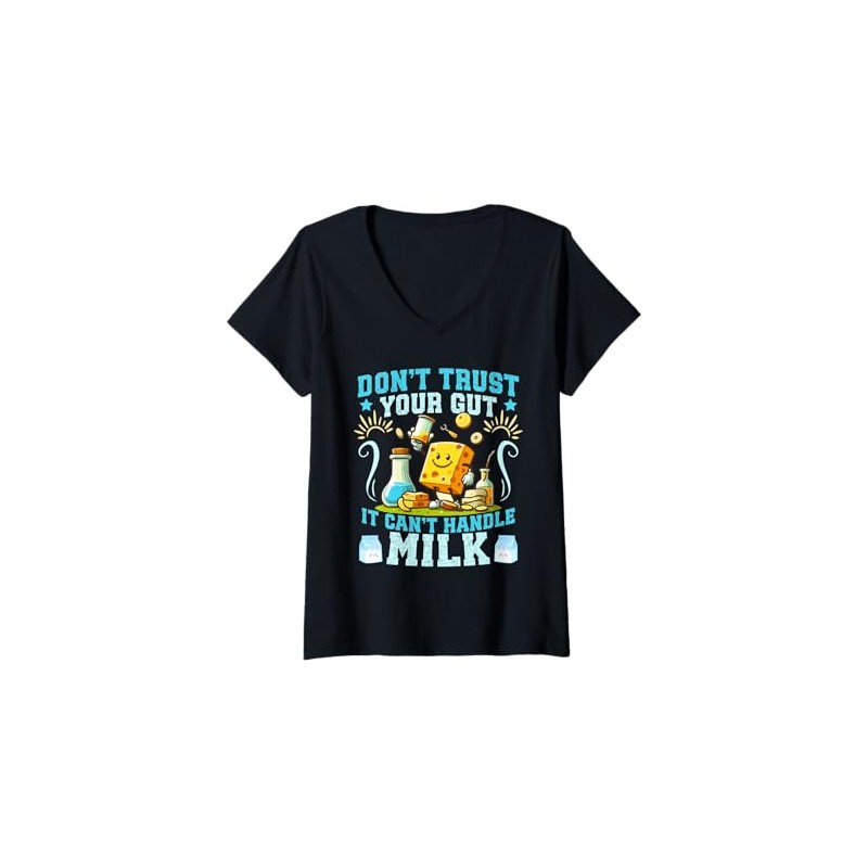 Womens Lactose Intolerant Don't Trust Your Gut It Can't Handle Milk V-Neck T-Shirt