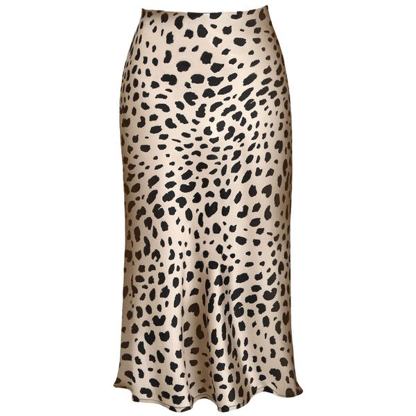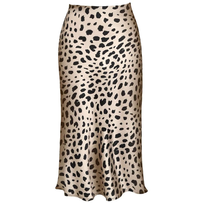 Womens Leopard Print Skirt Midi Long Length Silk Satin High Waist Elastic Skirts S