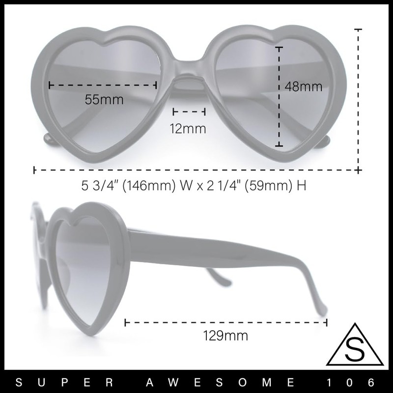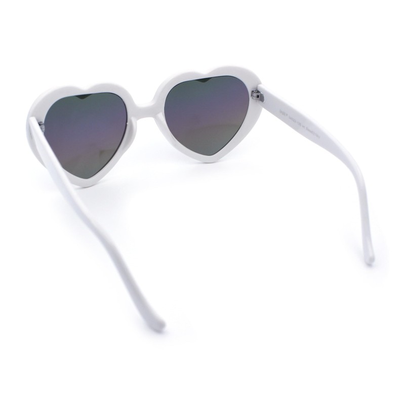 Womens Lolita Rainbow Mirror Lens Thick Plastic Heart Shape Sunglasses White