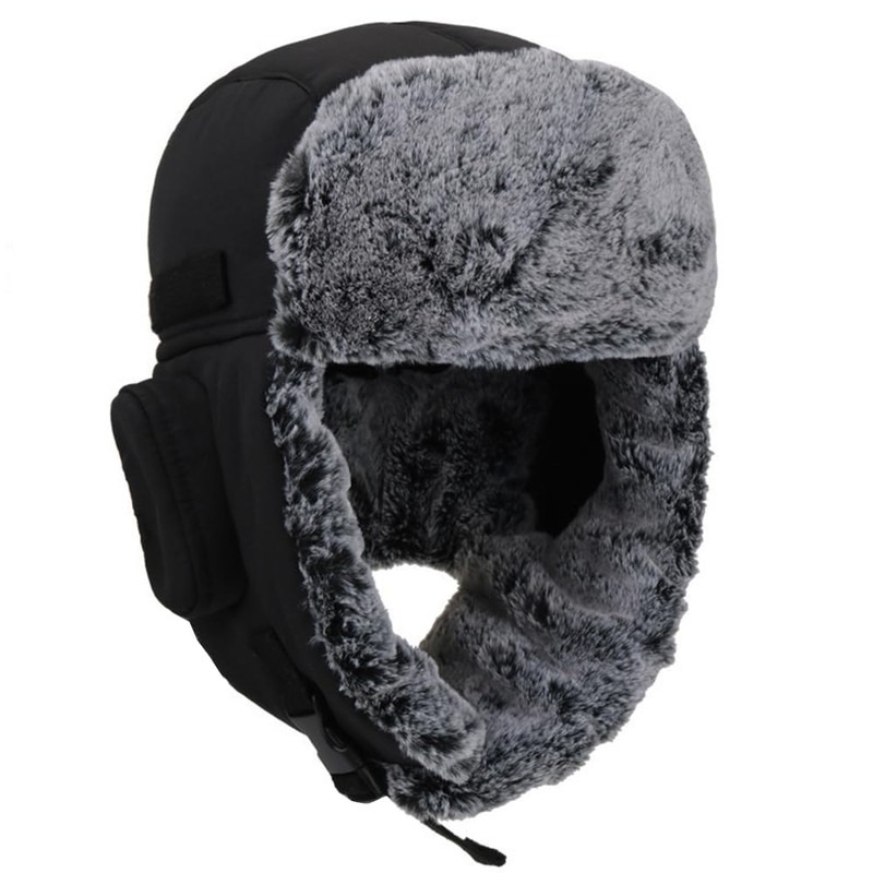 Womens Mens Eskimo Windproof Winter Trapper Trooper Hats Ushanka Russian Aviator Warm Hat Ear Flaps Black