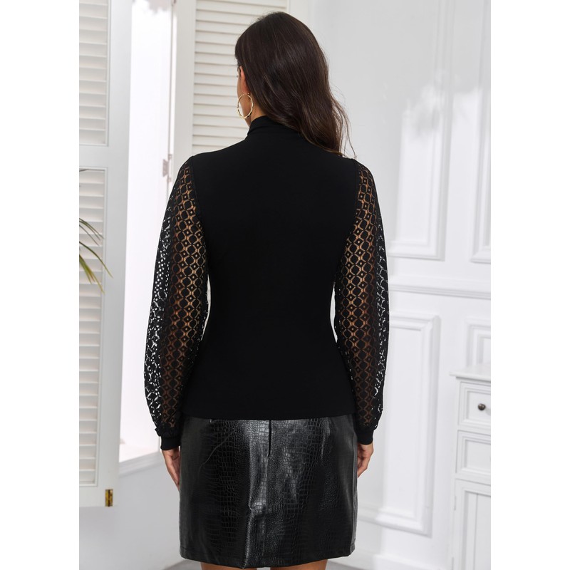 • Elastic material, figure hugging, easy to fit any body figure and you will feel close but relaxed under this t shirt, slim design will show your feminine curves. Chic eyelet lace hollow out ruffle lantern sleeves add femininity