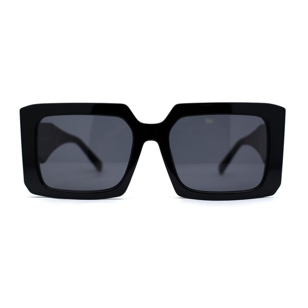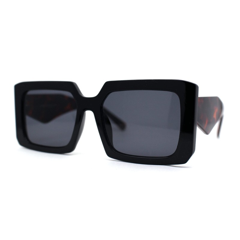 Womens Mod Designer Square Rectangle Fashion Sunglasses Black Tortoise Black