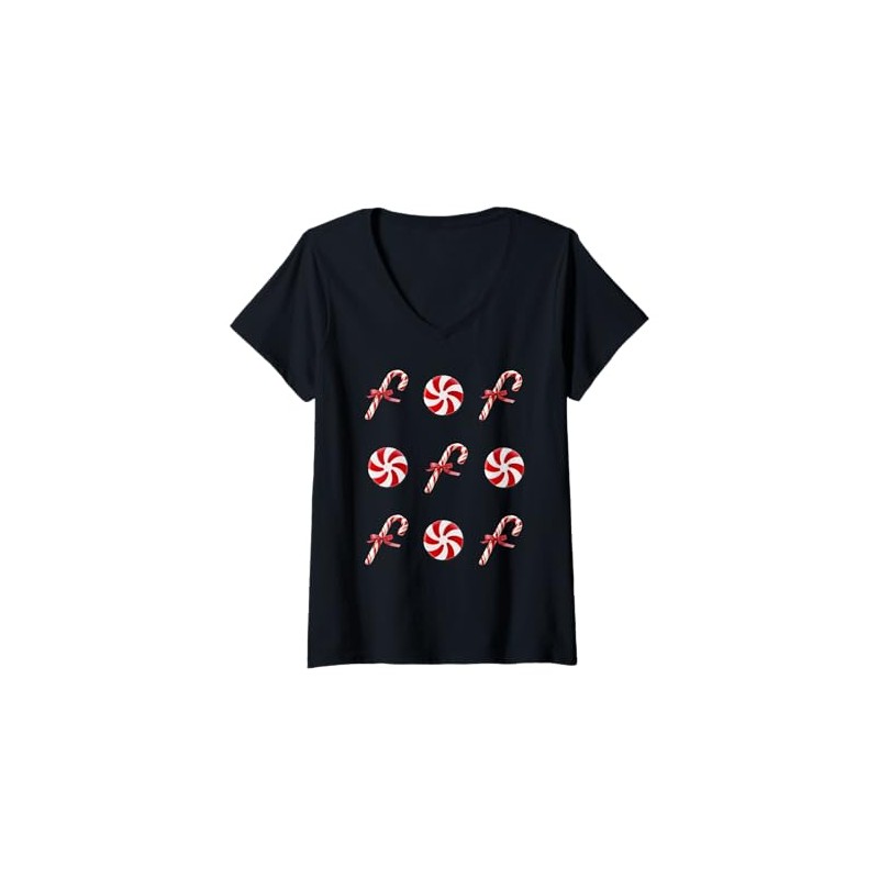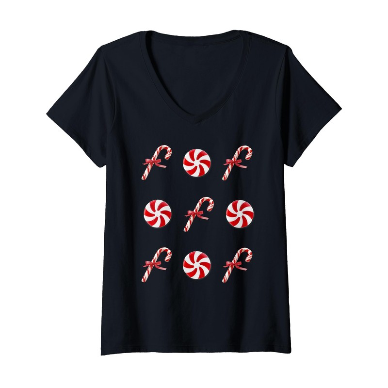Womens Peppermint Candy Cane Christmas V-Neck T-Shirt