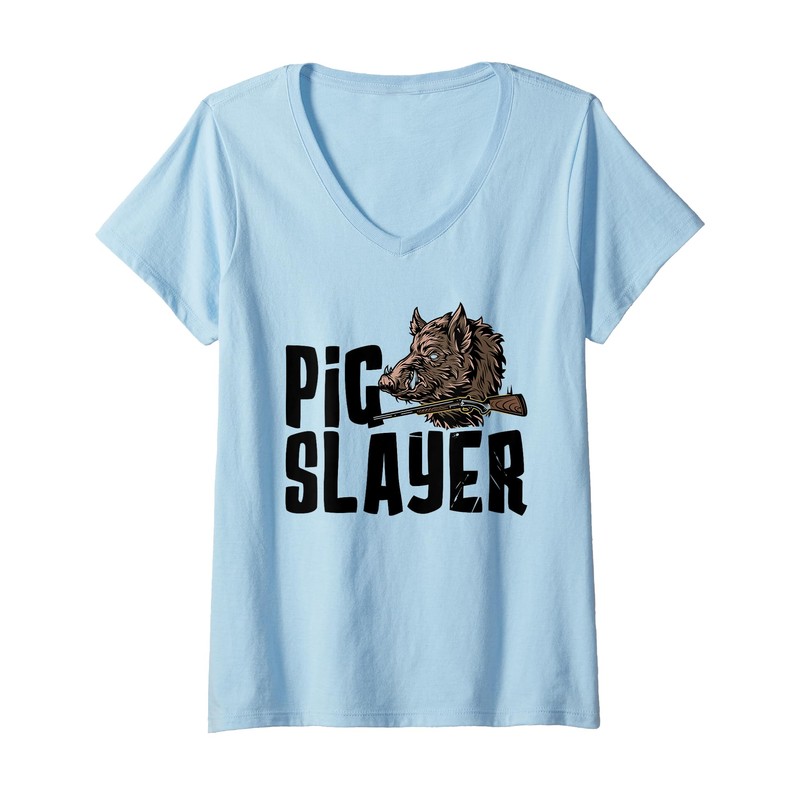 Womens Pig Slayer Wild Pig Wild Boar Pig Wild Hog Hunting V-Neck T-Shirt