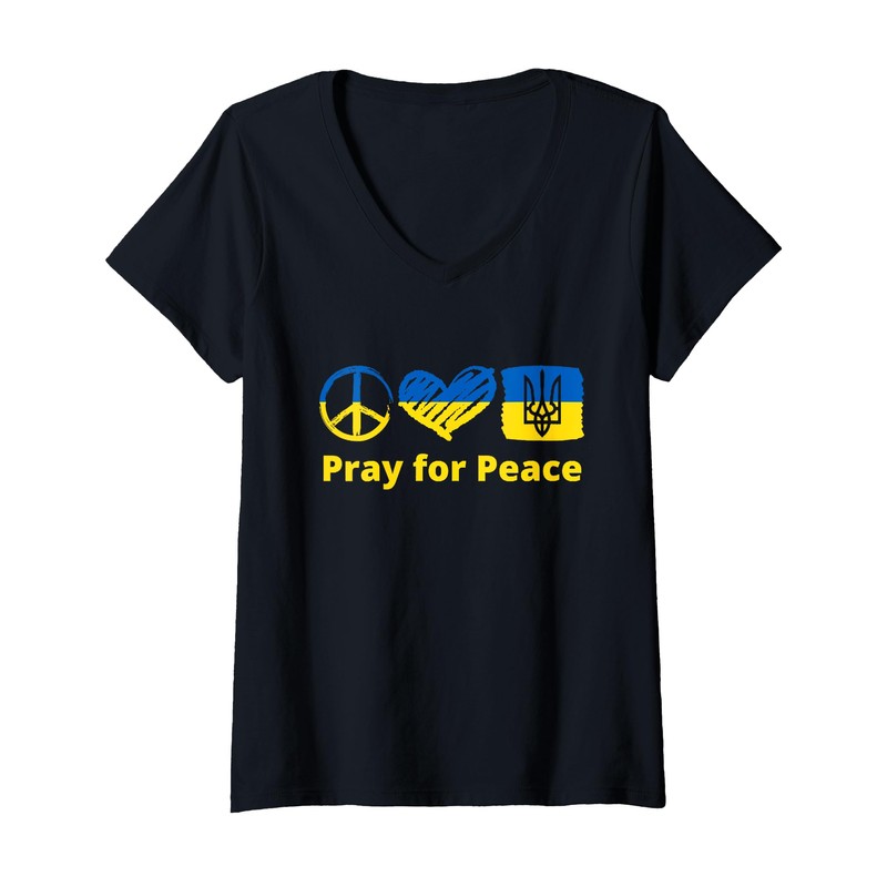 Womens Pray for Ukraine We Stand with Ukraine V-Neck T-Shirt