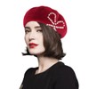 Womens Red Beret Hat, Winter Classic French Beret with Pearls Bow for Ladys (Red with Bow)