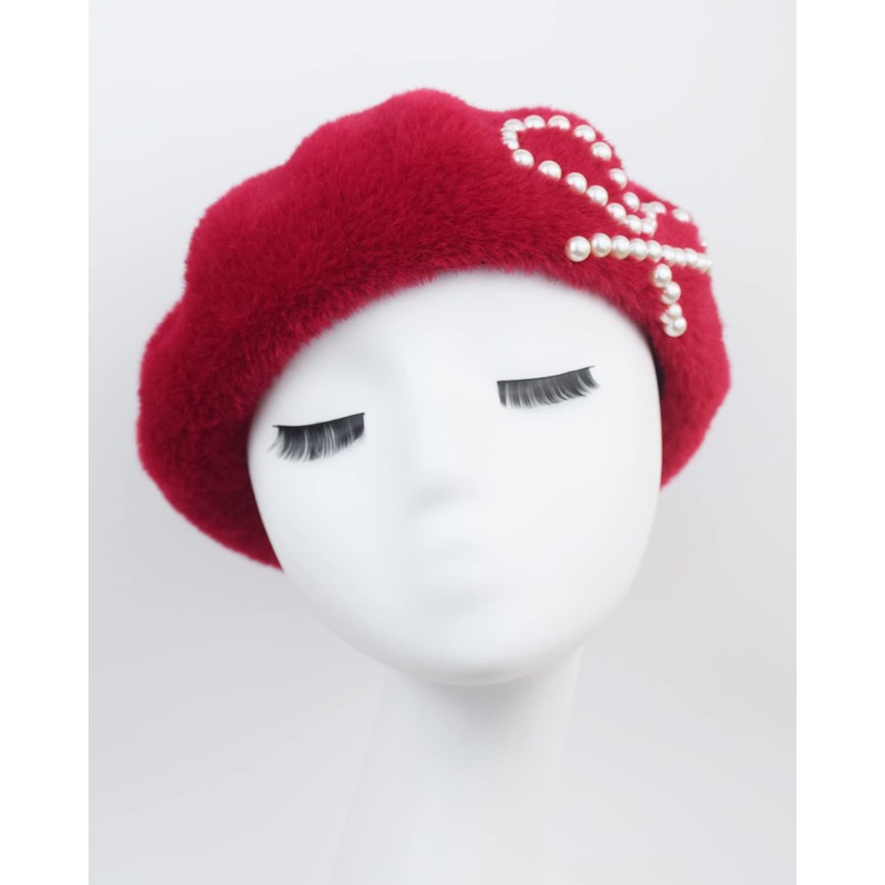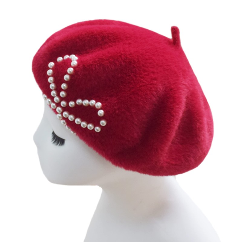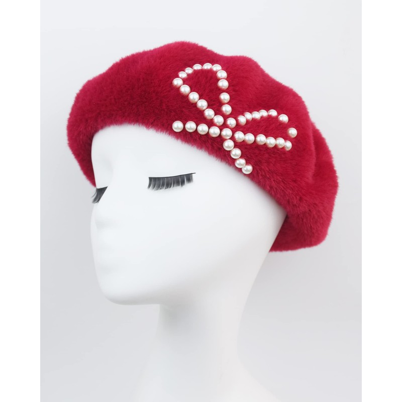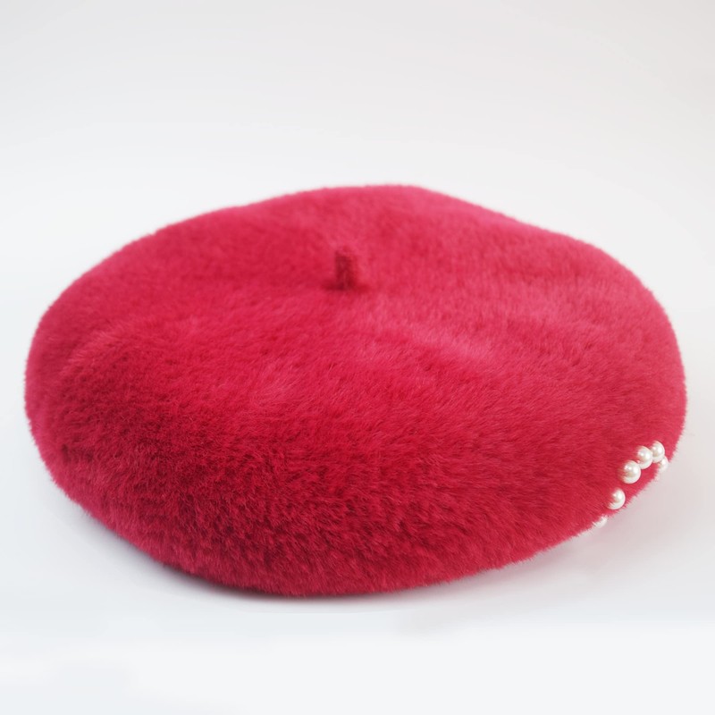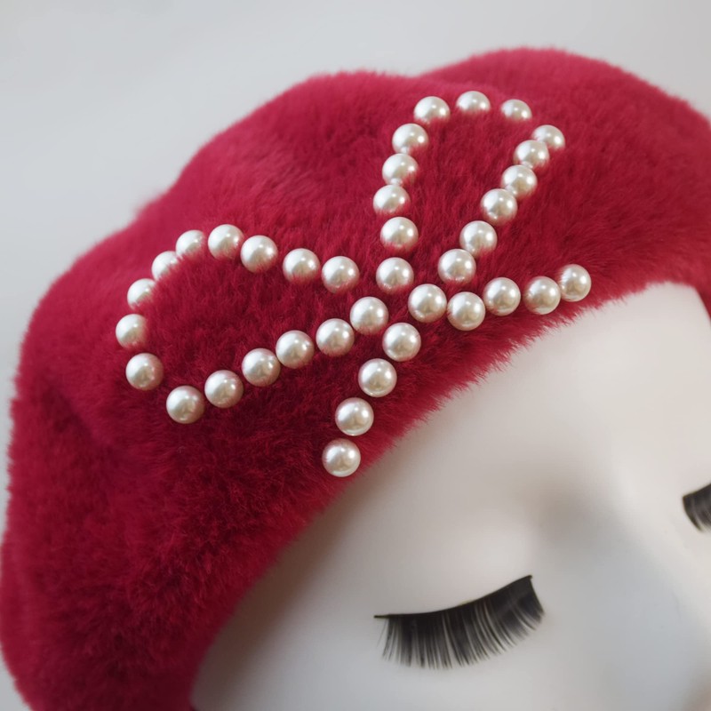 - Exquisite Design - The solid color winter beret made with fuzzy and furry faux mink to keep you warm while keeping up with contemporary fashion, and decorated with pearl bows, chic and elegant.