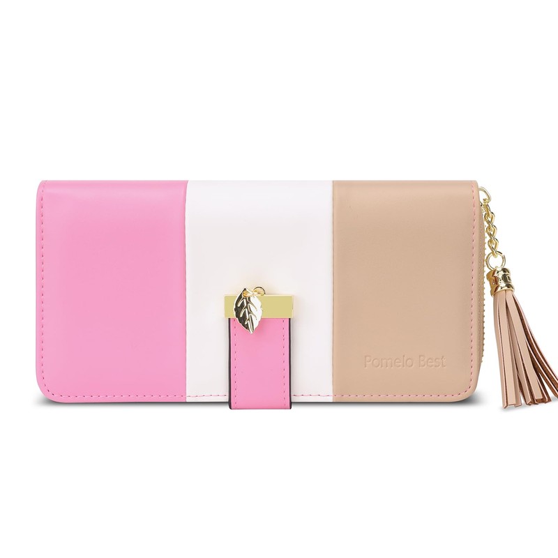 Womens RFID Blocking Wallets Large Capacity Wallets for Women with Multiple Card Holder and Cellphone Compartment, Yellowish Pink