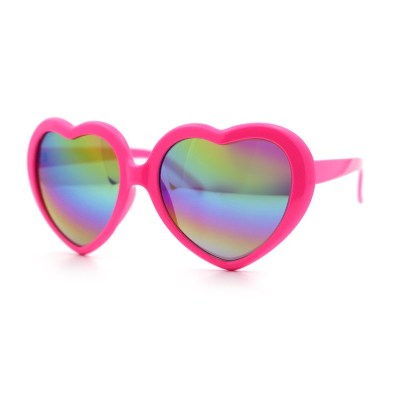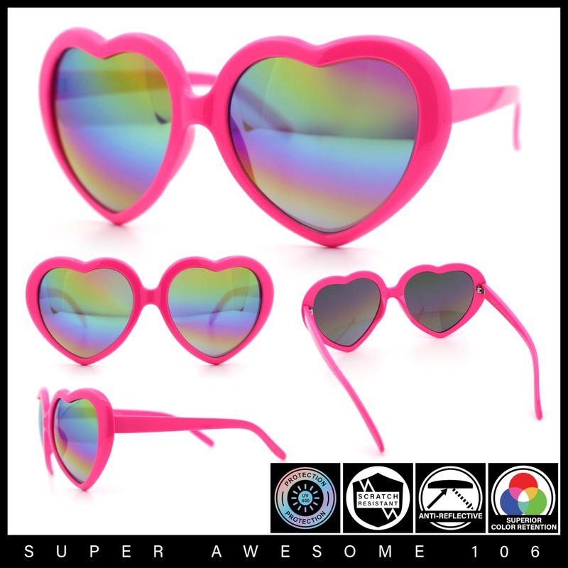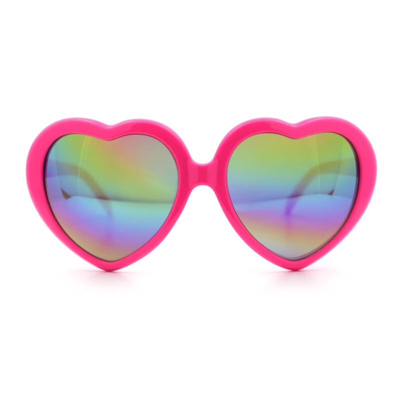 Womens Rusta Rainbow Mirror Lens Plastic Frame Heart Shape Sunglasses Fuchsia...