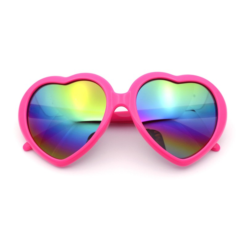 Womens Rusta Rainbow Mirror Lens Plastic Frame Heart Shape Sunglasses Fuchsia - Rainbow Mirror