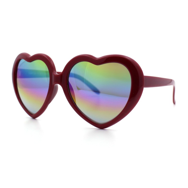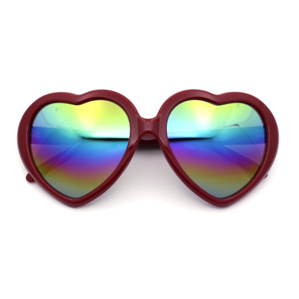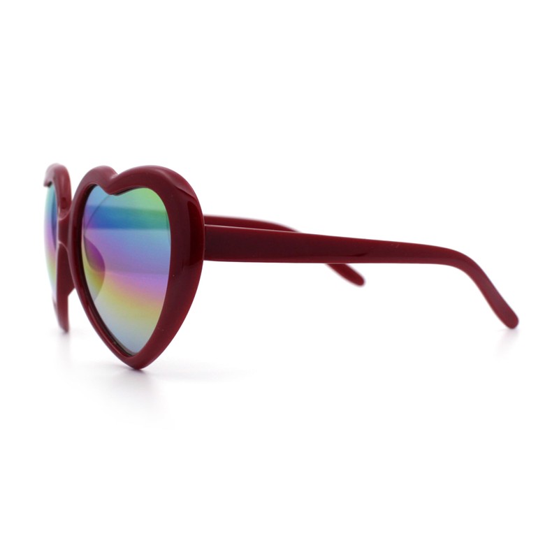Womens Rusta Rainbow Mirror Lens Plastic Frame Heart Shape Sunglasses Red - Rainbow Mirror