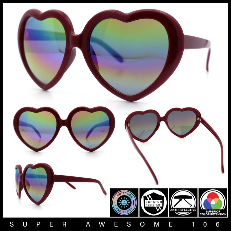Womens Rusta Rainbow Mirror Lens Plastic Frame Heart Shape Sunglasses Red - R...