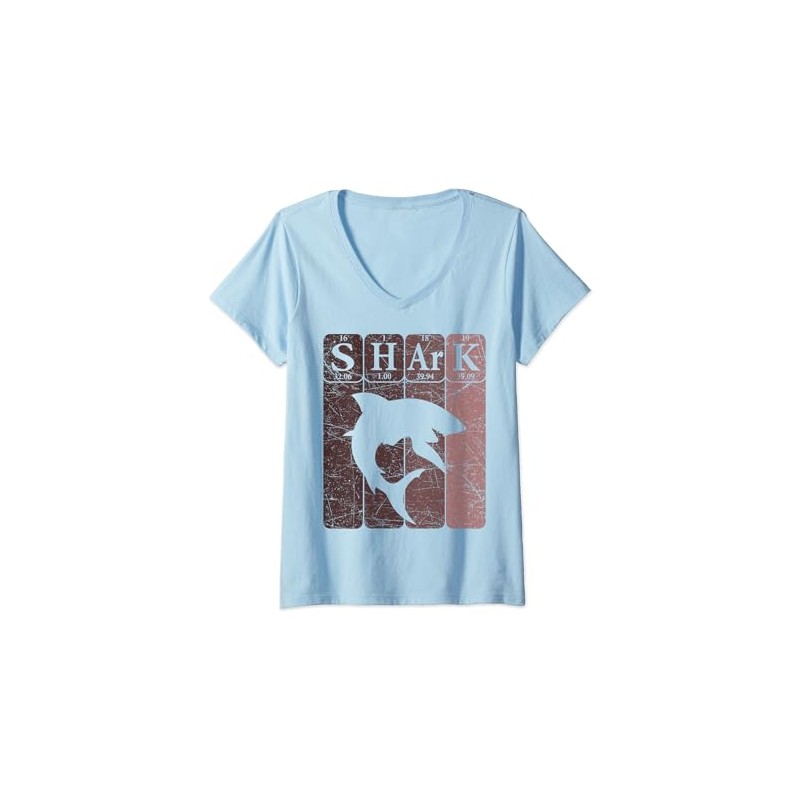Womens Shark Periodic Table Elements Retro Shark Selachimorphaphile V-Neck T-...
