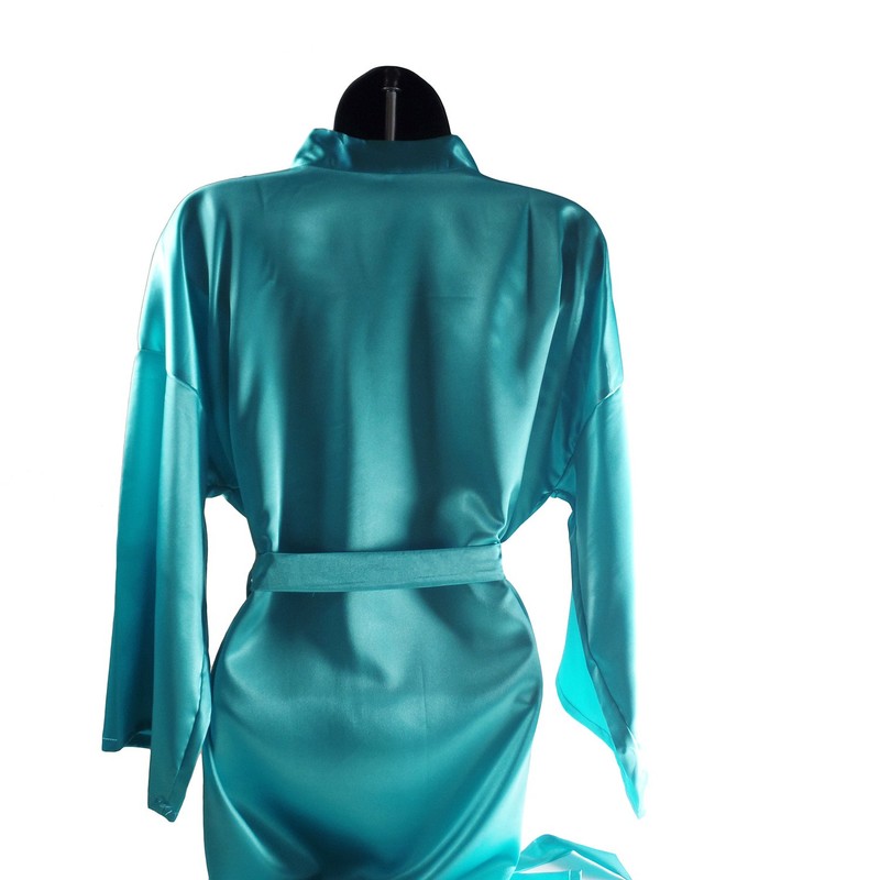 Womens Short Kimono Solid Satin Lounge Robe, Medium, Turquoise Blue