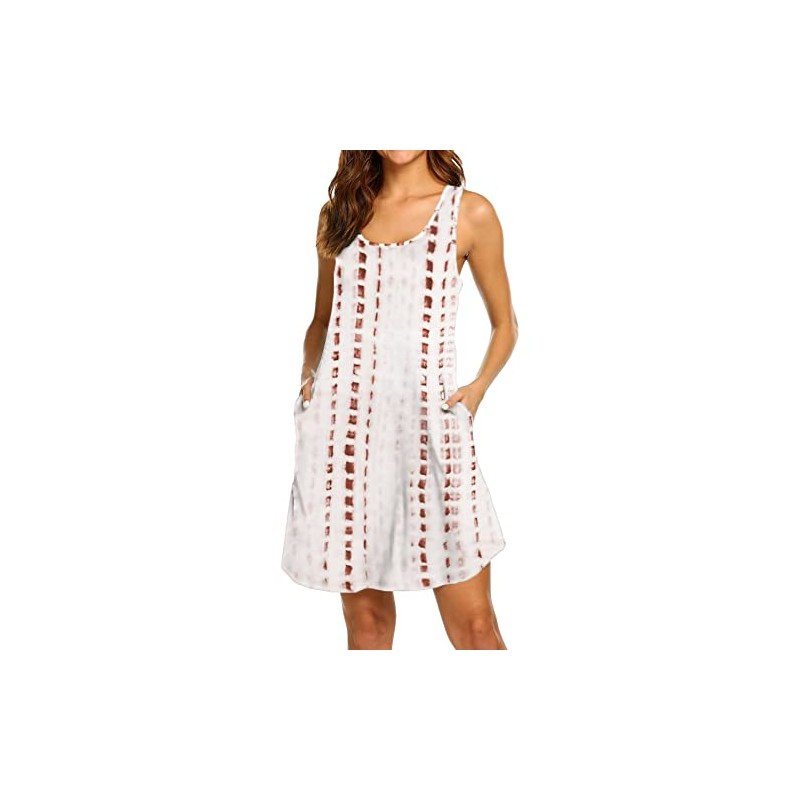 Womens Summer Dresses Casual Beach Racerback Sleeveless Low Cut U Neck Flowy Short Dress with Pockets Coffee Print M