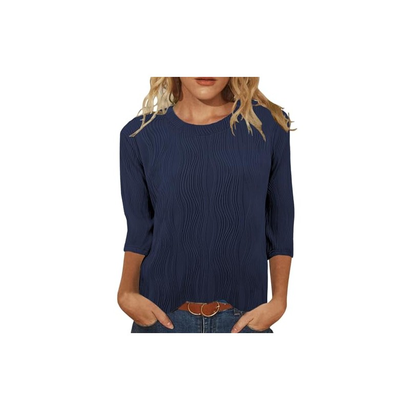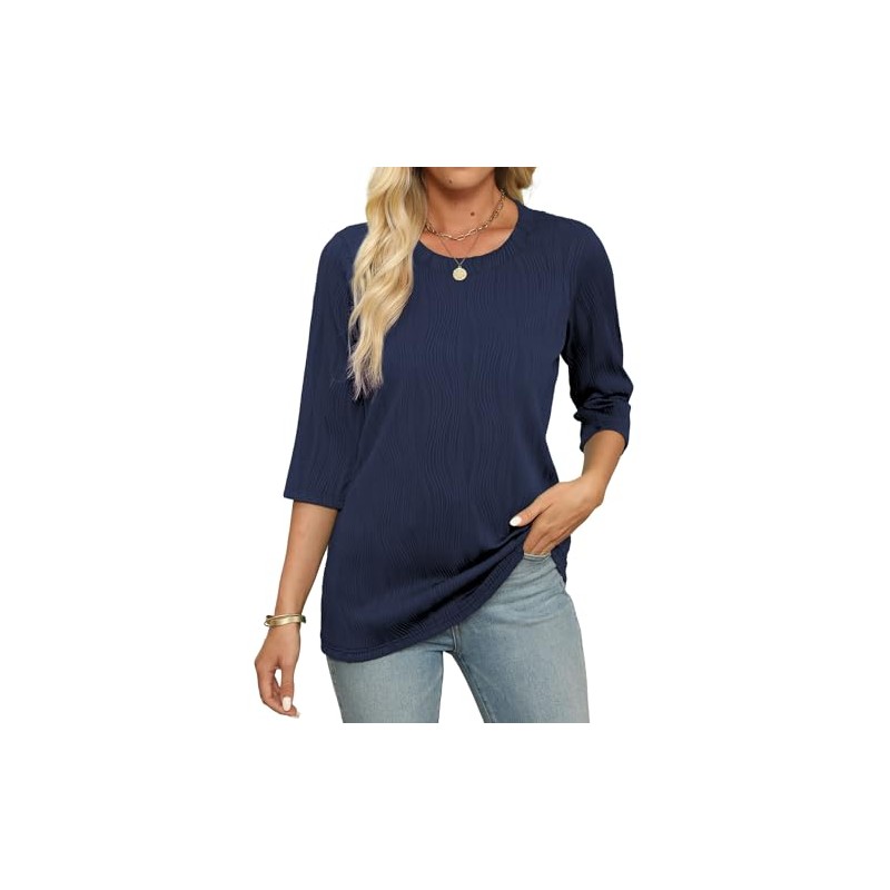 Womens Summer Tops 2024 Fashion 3/4 Sleeve Casual Blouse Navy Blue