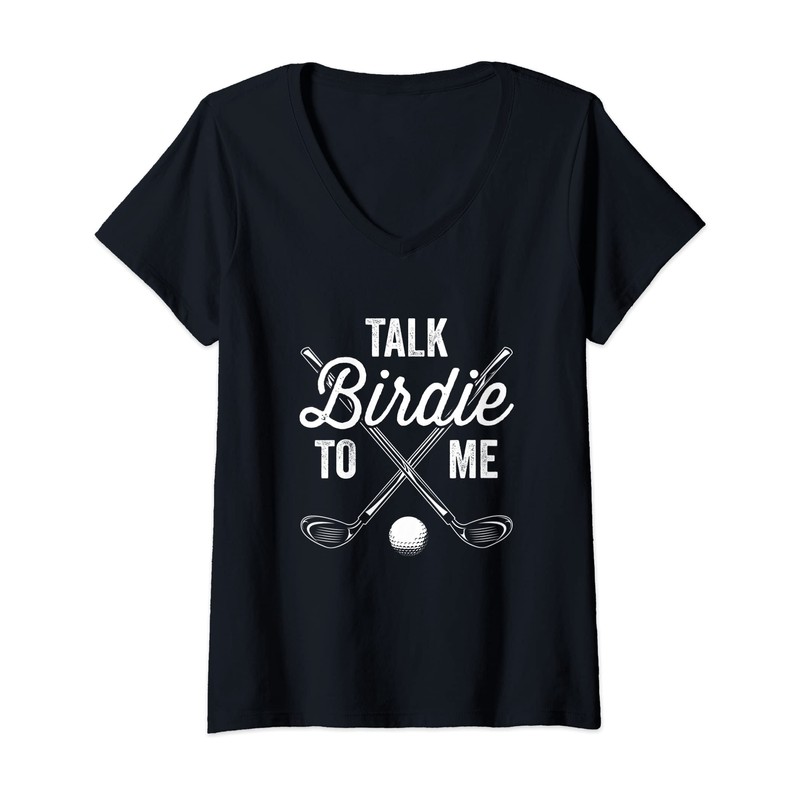 Womens Talk Birdie To Me Funny Golf Design V-Neck T-Shirt