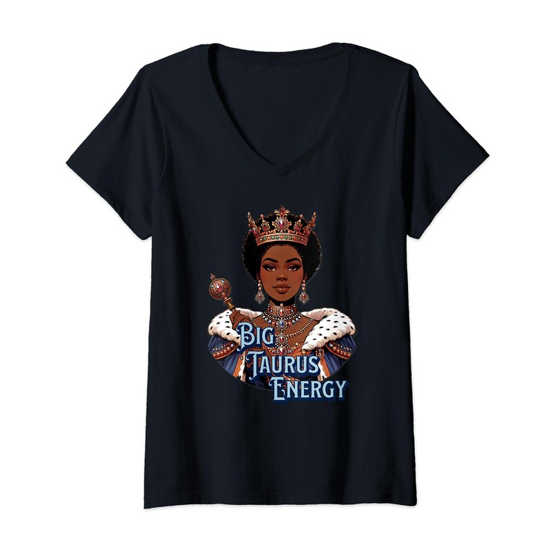 Womens Taurus Queen Zodiac Crown Savage Petty Afro Regal V-Neck T-Shirt