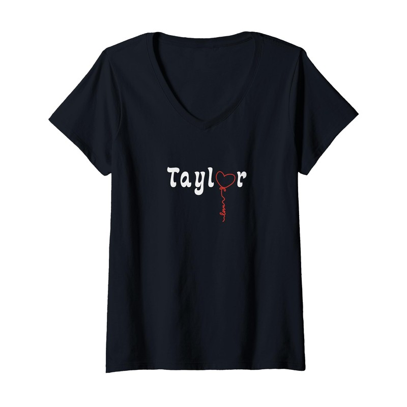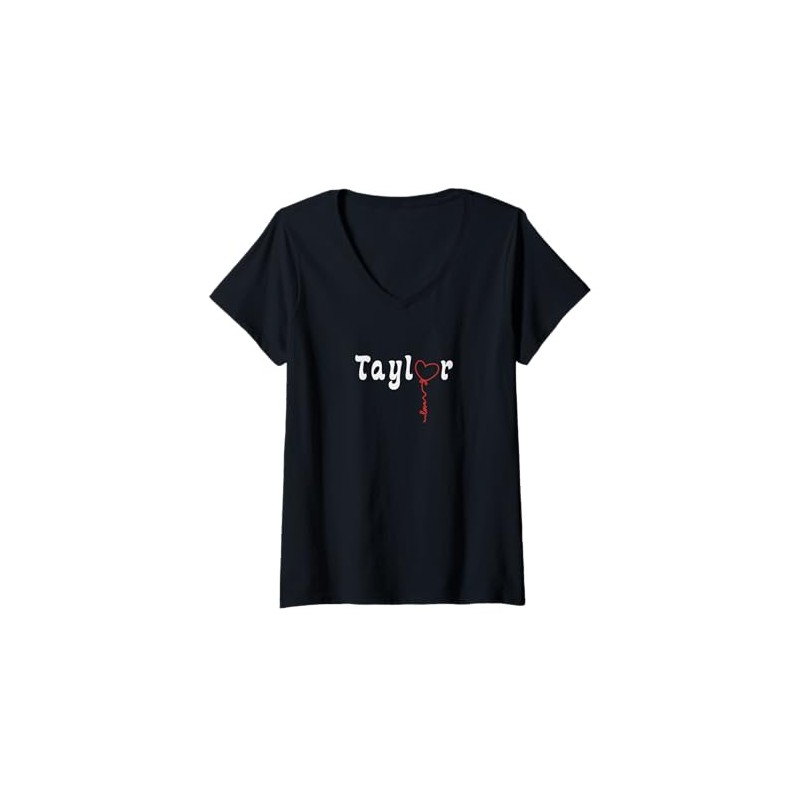 Womens Taylor Name with Heart Pendant V-Neck T-Shirt
