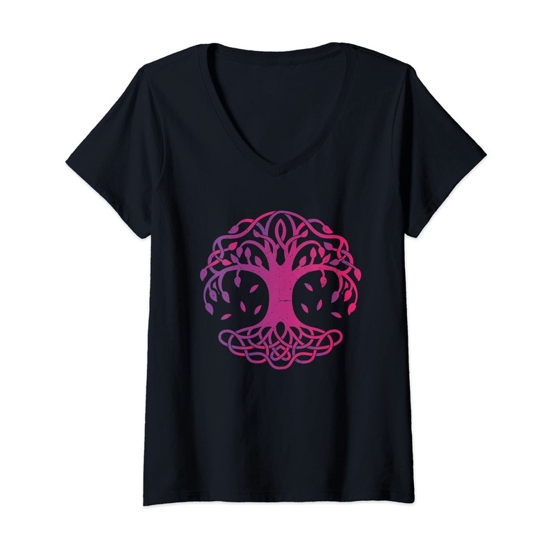 Womens Tree Of Life Celtic Nordic Yggdrasil Lebensbaum V-Neck T-Shirt