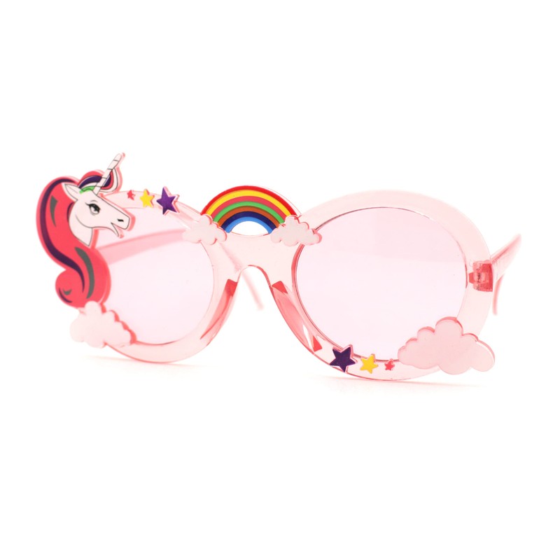 Womens Unicorn Rainbow Cloud Mod Oval Plastic Sunglasses Pink