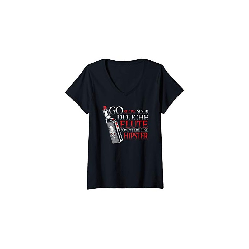 Womens Vaping Smoking Hipster Douche Flute Vape Pipe Anti Vaper V-Neck T-Shirt