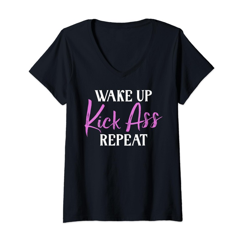 Womens Wake up Kicks Ass Repeat Arrogant V-Neck T-Shirt
