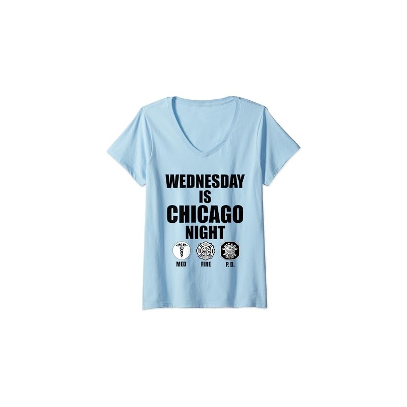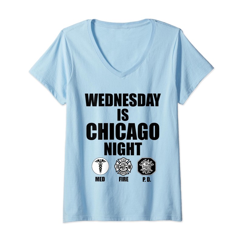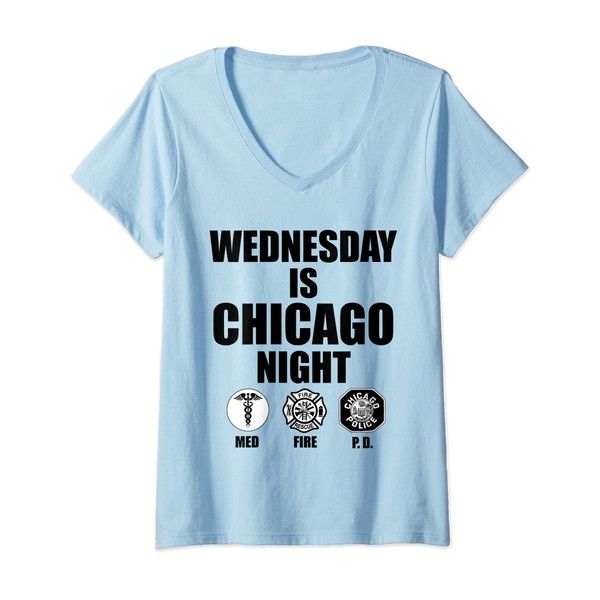 Womens Wednesday Is Chicago Night Med Fire PD V-Neck T-Shirt