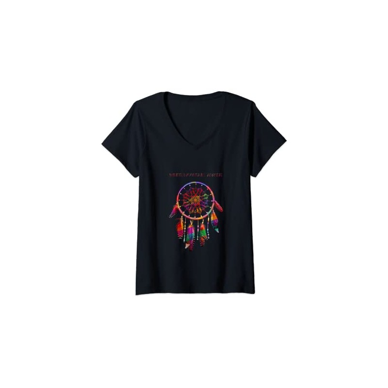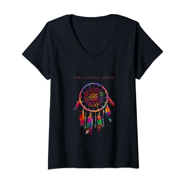 Womens WHITE MOUNTAIN APACHE Native Indian Colorful Dreamcatcher V-Neck T-Shirt