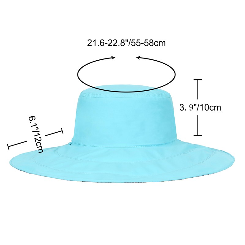 - Size:The circumference of the large hat is 21.6-22.8"/55-58cm, and the brim length is 6.1"/15.5 cm. The circumference of a medium-sized hat is 21.6-22.8"/55~58cm, and the brim length is 4.7"/12cm.
