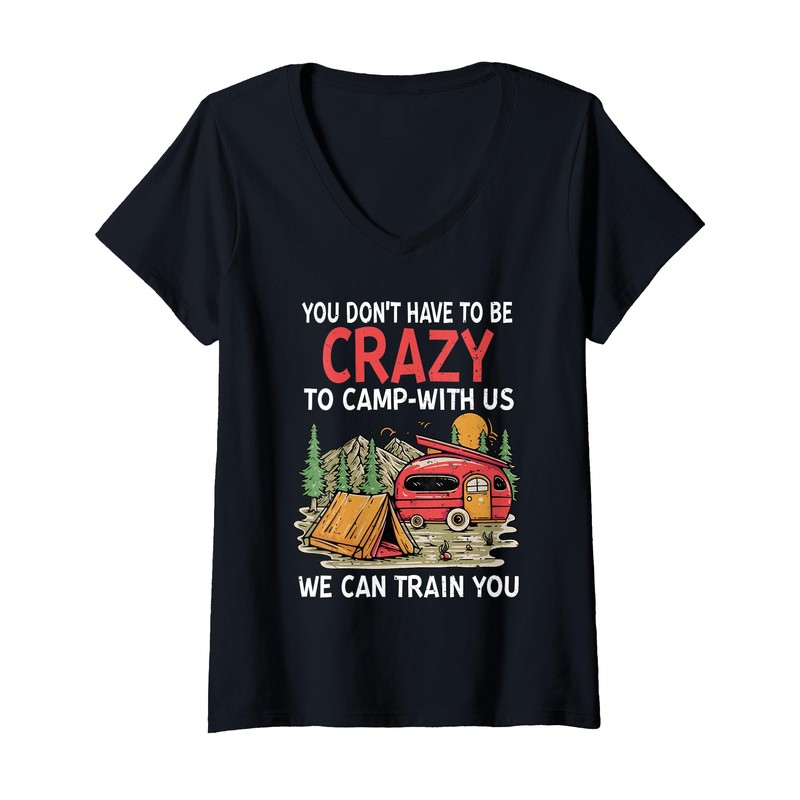 Womens You Don't Have to Be Crazy to Camp with Us We Will Train You V-Neck T-Shirt
