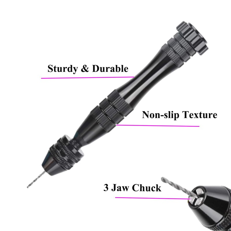 - APPLICATION This handy hand drill bit is ideal for making jewelry, key chain, necklace, earrings, Christmas decor and woodworking, sculpting, etc., but not suitable for hard materials such as iron, steel, stone, glass, tile, etc.