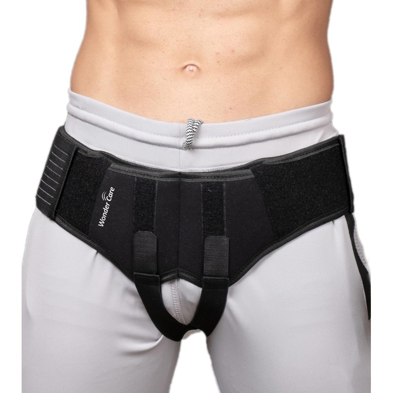 Wonder Care- Grey Inguinal Hernia Support Truss brace for Single/Double Inguinal with Two Removable Compression Pads & Adjustable Groin Straps Surgery & injury Recovery belt