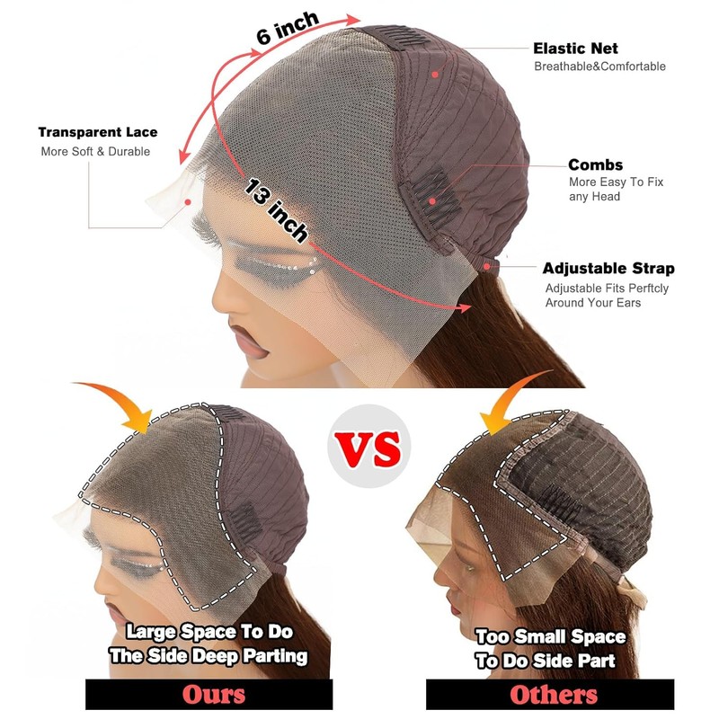 7.Texture: Straight 13x6 chocolate brown lace front wig reddish hd brown lace front wigs human hair