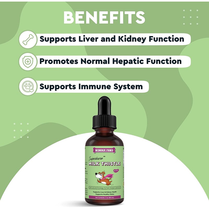 - Delicious, dog approved flavor: A treat for pets that's easy and mess-free - For pet parents looking for an alternative to capsules or soft chews, all it takes is a few drops of Wonder Paws Milk Thistle for dogs to mix nicely with your dog or cat foods. Small, medium, and large breeds love it. Intended for daily use - Serving size is based on your dog's weight.