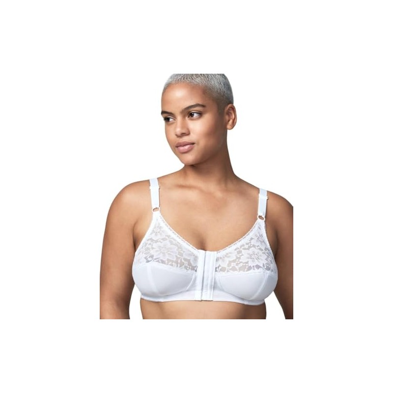 - Wireless front closure bra with comfortable front adjustable straps. Feminine lace. Inner underbust support. Unique comfort band that conforms to your body. Four-way stretch fabric.
