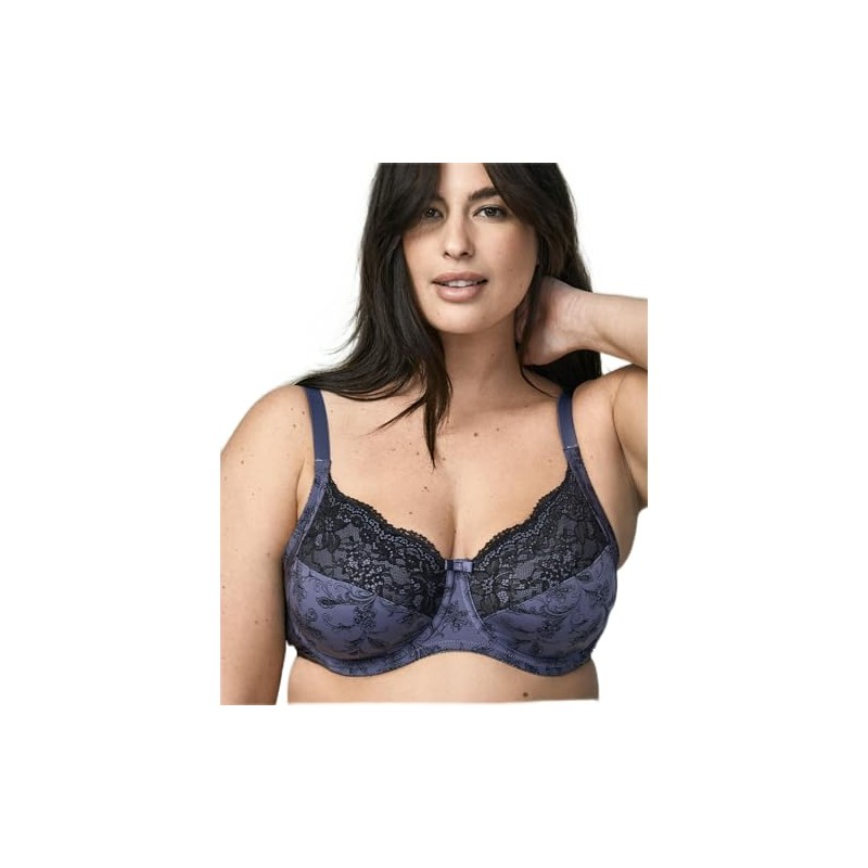 Wonderbra Womens Printed Full Support Underwire Lace Top Cup Bra, Private Jet/ Bl, 42C US