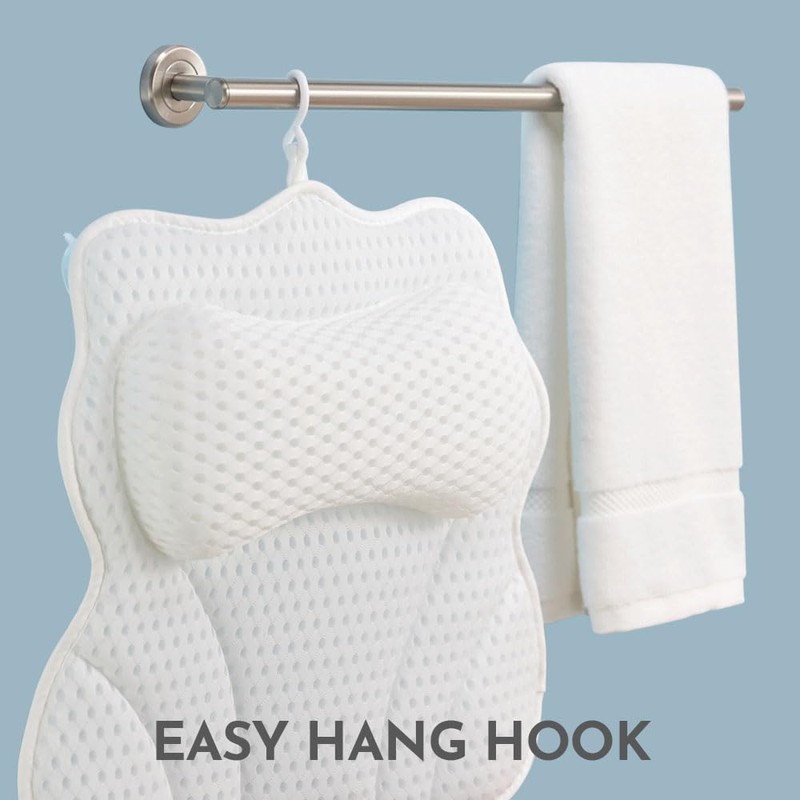 - MACHINE WASHABLE, FOR ALL TUB TYPES: easy to clean, simply toss in the washing machine in included mesh washing bag; also features an easy hang hook to air dry after each use; pillow is universal and fits all tub types from attached and free standing to spas and hot tubs