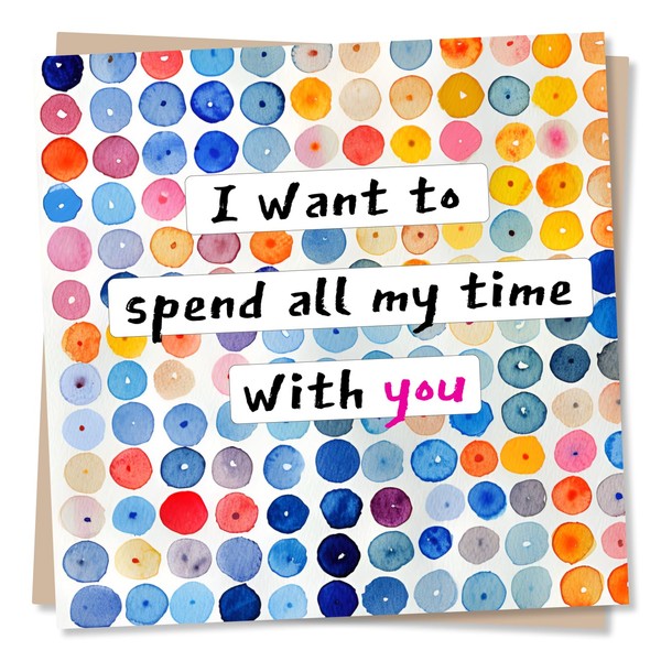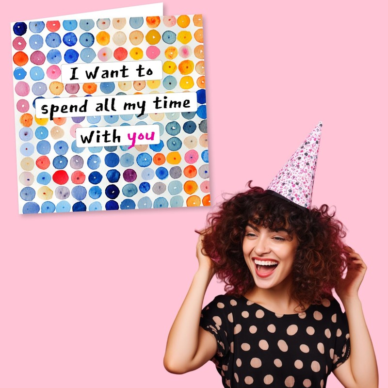 Wonderful Multicolour Spotted Birthday, Anniversary or Valentine's Card For Partner - I Want To Spend All My Time With You - For Boyfriend, Girlfriend, Husband, Wife