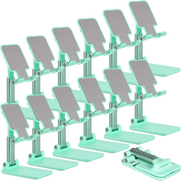 Wonderjune 12 Pcs Cell Phone Stand for Desk Phone Holder Stand Foldable Angle Height Adjustable Portable Holder Tablet for Office Travel Photography(Mint Green)